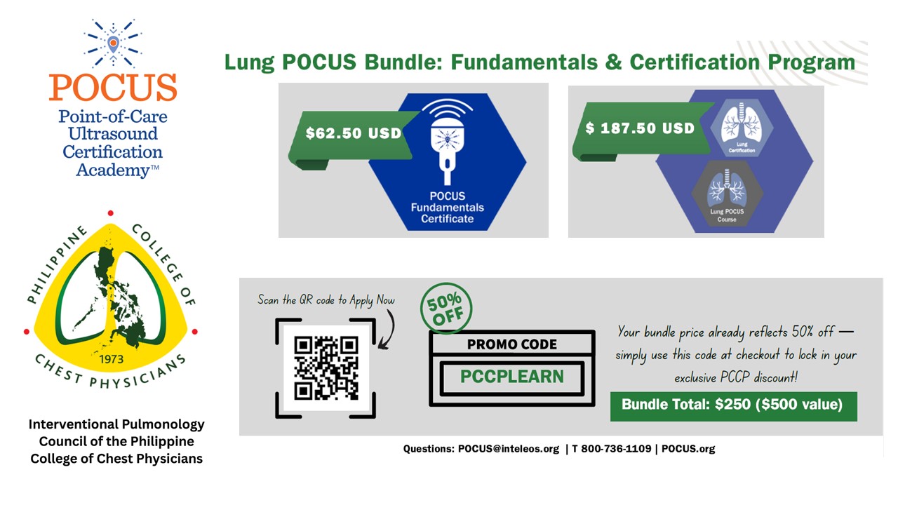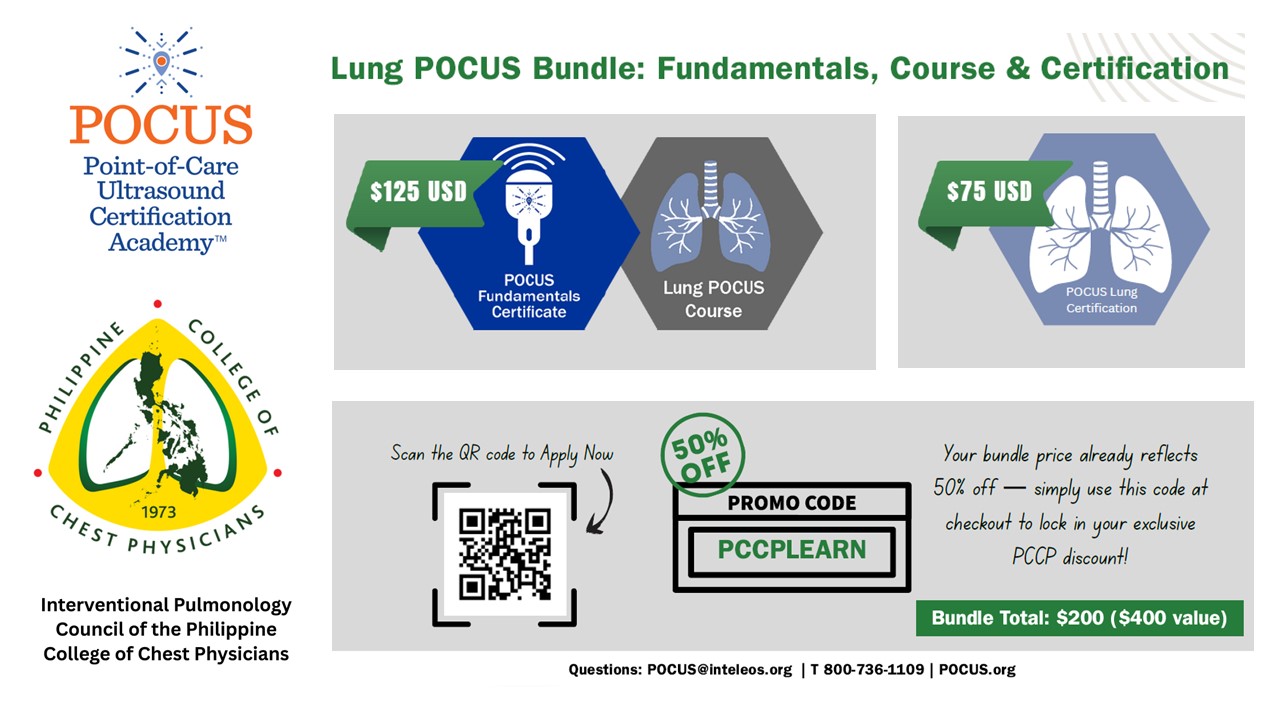 All programs can be completed online and may be supplemented by attendance to the courses during our regular conventions and workshops. For more information, you may join the overview and Q& A webinar of the Interventional Pulmonology Council and Inteleos POCUS Certification Academy on September 17, Wed, 7:00 PM via Zoom.