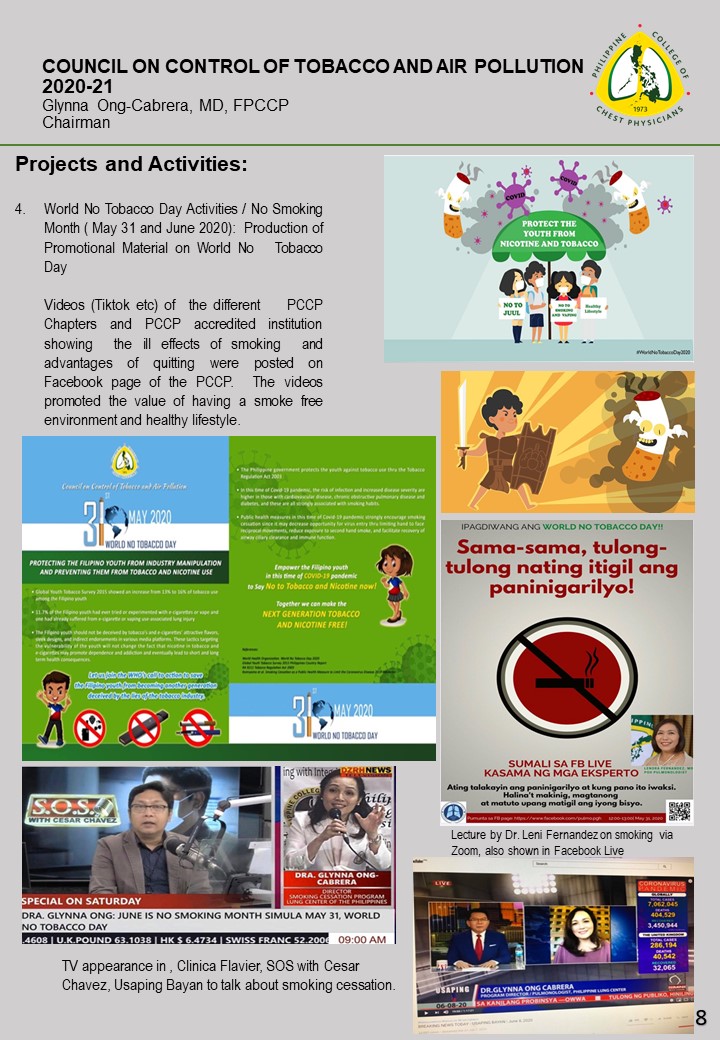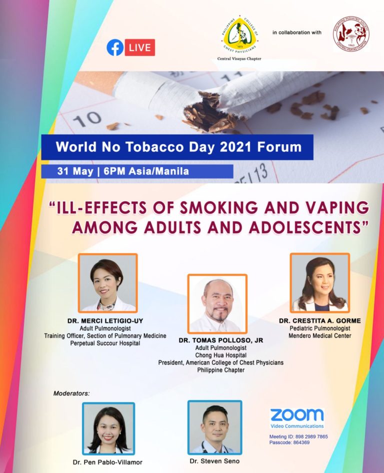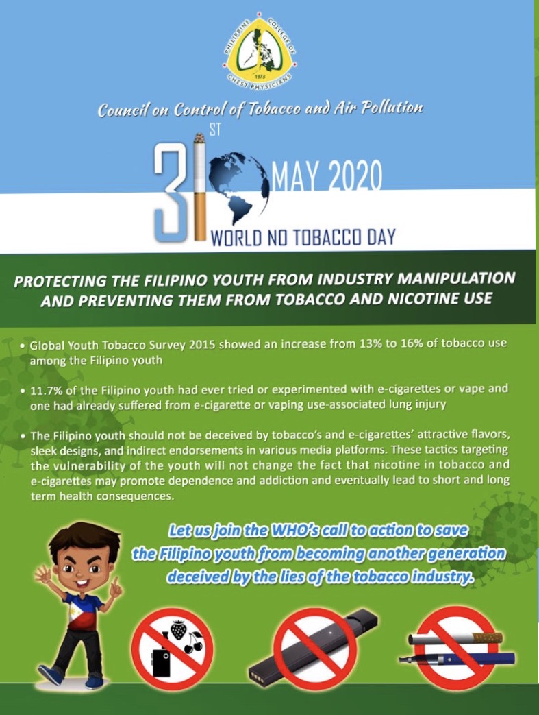 Watch as Dr. Dexter Feliciano, member of the Council on Control of Tobacco and Air Pollution, discusses the bad effects of smoking in celebration of the world no tobacco day.